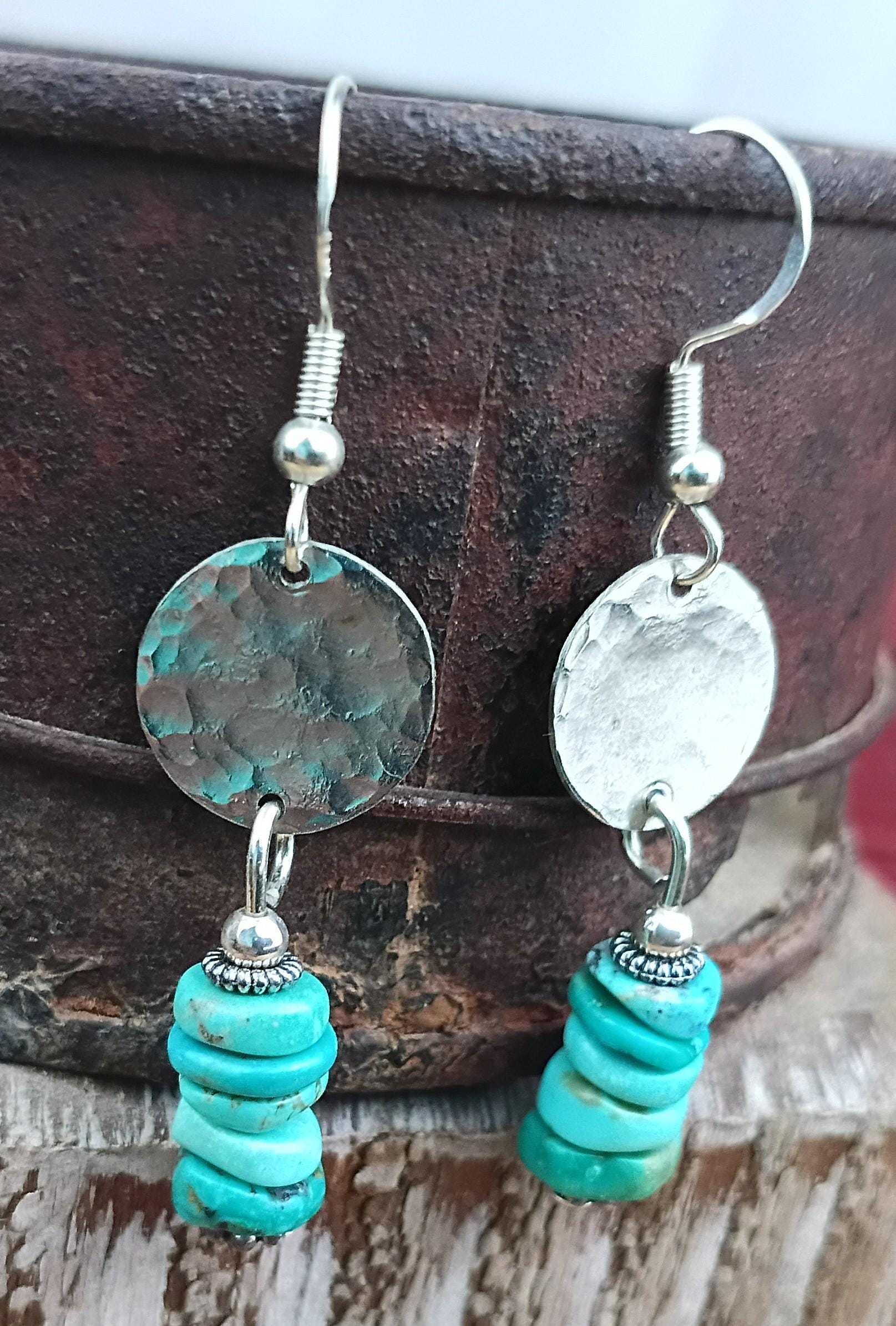 Beautiful handmade sterling silver coin earrings with Kingman Turquoise beads, southwest look!
